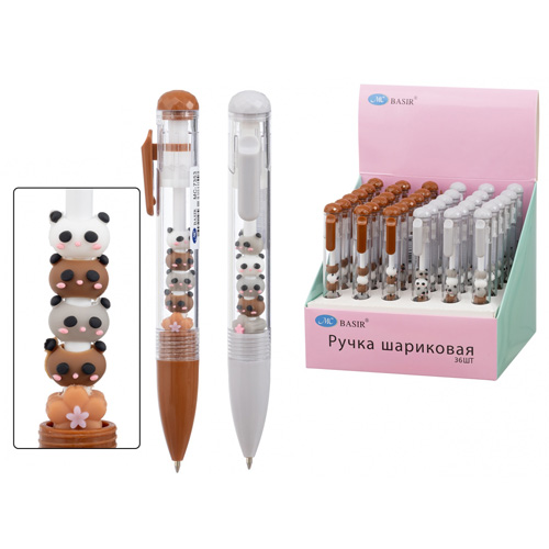 Ручка шариковая автоматическая " Basir " Мишки синяя, 1мм, комбинированный корпус: цветной (ассорти), прозрачная часть корпуса с наполнителем-подвижные фигурки мишки, дисплей