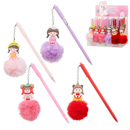 Ручка шариковая " Basir " Девочка Пушистик синяя 0,5мм, цветной пластиковый корпус-ассорти, колпачок со съёмным брелоком, 9см