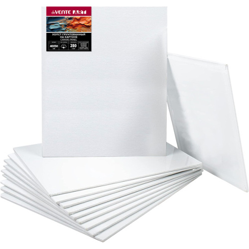 Холст " deVente " Art 40*50см белый, на картоне, хлопок, мелкое зерно, грунтованный, термоусадочная пленка