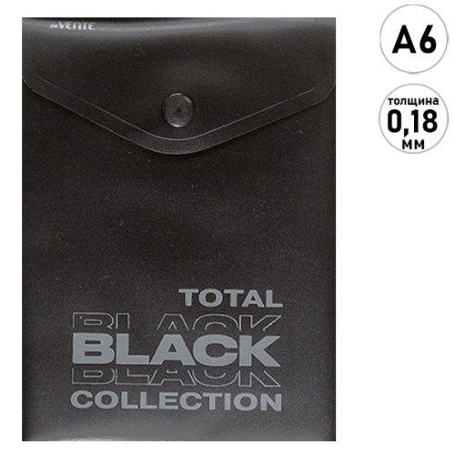 Папка на кнопке " deVente " МАЛЫЙ ФОРМАТ А6+ (115*157мм) Total black, пластик 0,18мм, непрозрачная с рисунком, ассорти, 2 дизайна, индивидуальная маркировка, тиснение фольгой