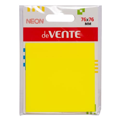 Блок самоклеящийся (стикеры) 76*76мм 2011330 50л неон, желтый, пластиковый, полупрозрачный " deVente "