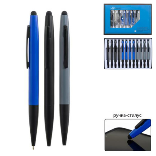 Ручка шариковая " Basir " синяя 0,7мм металлическая, стилус, поворотный механизм, цветной корпус ассорти, клип и наконечник черные