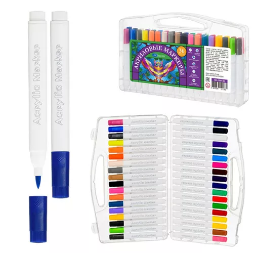 Набор маркеров акриловых " Basir " Зебра 36цв, 1-5мм, наконечник-кисть, в пластиковом боксе