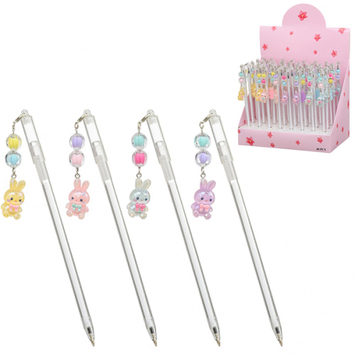 Ручка шариковая " Basir " Зайчики, синяя, 0,5мм, толщина письма 0,25мм, прозрачный пластиковый корпус, съемный брелок на цепочке- бусинки с фигуркой