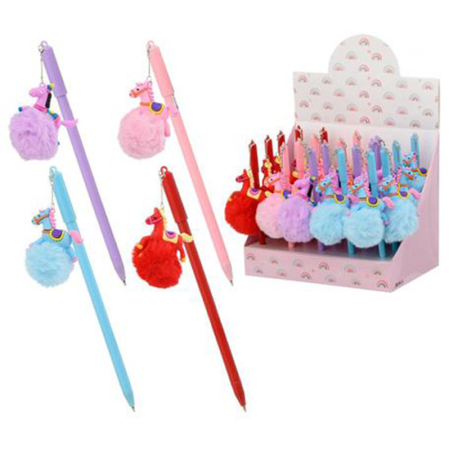 Ручка шариковая " Basir " Новогодняя- Символ года- Лошадь пушистик, синяя 0,5мм, толщина письма 0,25мм, цветной корпус, колпачок со съемным брелком, дисплей