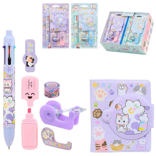 Набор подарочный " Basir " Лапки, в комплекте: блокнот на кнопке 83*70мм, ручка 6цв, мини текстмаркер, диспенсер с детским скотчем, ассорти (без возможности выбора дизайна), блистер, европодвес