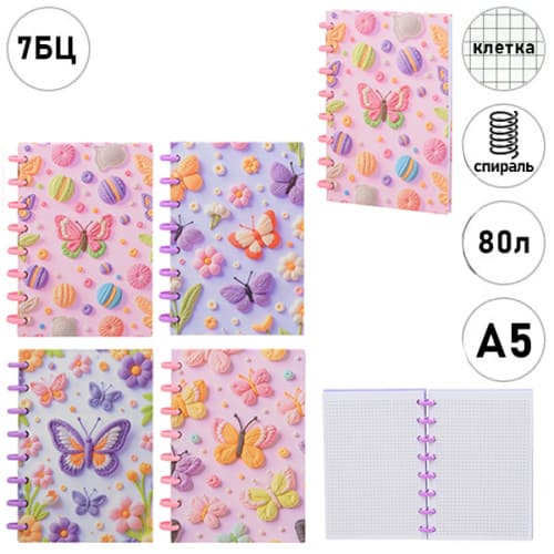 Блокнот А5 спираль 7БЦ 80л " Basir " Вышивка (ассорти), клетка, обложка- мелованный картон, 4 дизайна