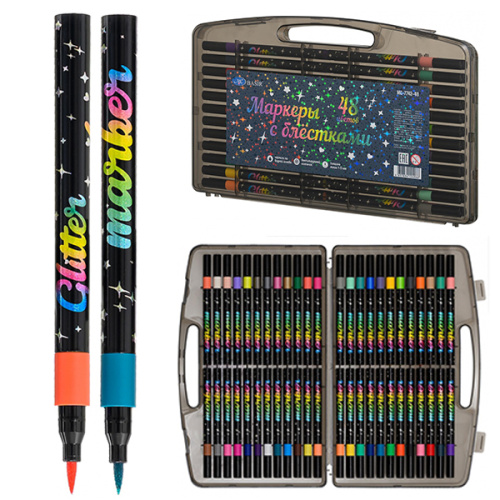 Набор аквамаркеров " Basir " 48 цветов, односторонние, наконечник кисть 1-5мм, вентилируемый колпачок, пластиковый бокс