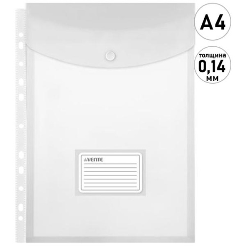 Папка на кнопке вертикальная А4 " deVente " прозрачная, пластик 0,14мм, с расширением, 235*320мм