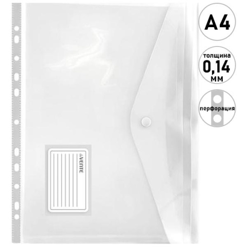 Папка на кнопке горизонтальная А4 " deVente " прозрачная, пластик 0,14мм, с расширением, с перфорацией, 243*310мм