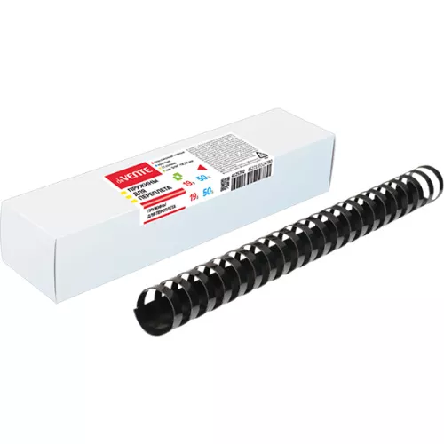 Пружины для переплета " deVente " 19мм, черные, круглые, пластик, 50шт (для сшивания 41-55 листов)