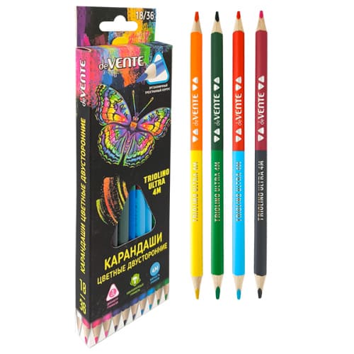 Карандаши цветные деревянные двухсторонние Triolino Ultra 18шт 36цв " deVente " 4M трехгранные, с эффектом Velvet Touch, картонная упаковка