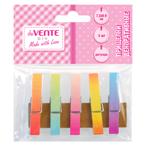 Декоративные прищепки " deVente " Natural Wood, Degrade ассорти, деревянные, 72*9мм, 5шт, пластиковый пакет, европодвес