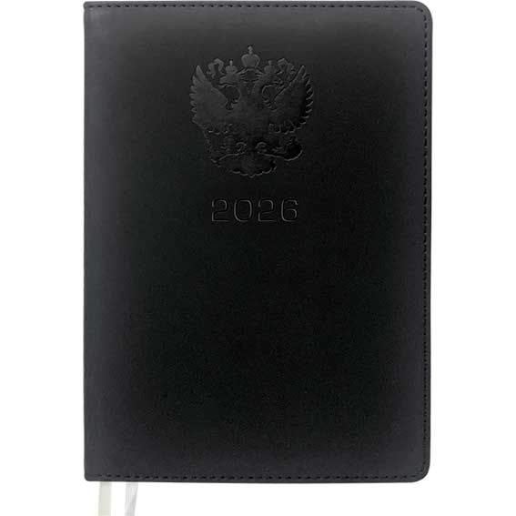 Ежедневник 2026 А5 145*205мм искусственная кожа " deVente " 168л Emblem, черный, линия, поролон, кремовый блок 70г/м2, печать в 2 краски, термотиснение, перфорация, 2 ляссе, перфорация, отстрочка, закругленные уголки, термоусадочная пленка