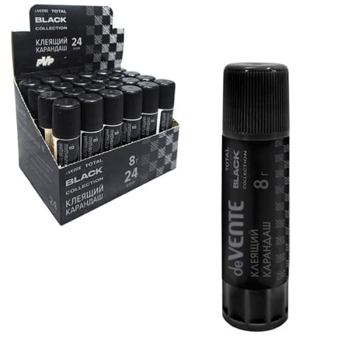 Клей-карандаш " deVente " Total Black 8гр, основа PVP, быстросохнущий, цвет корпуса черный, картонный дисплей