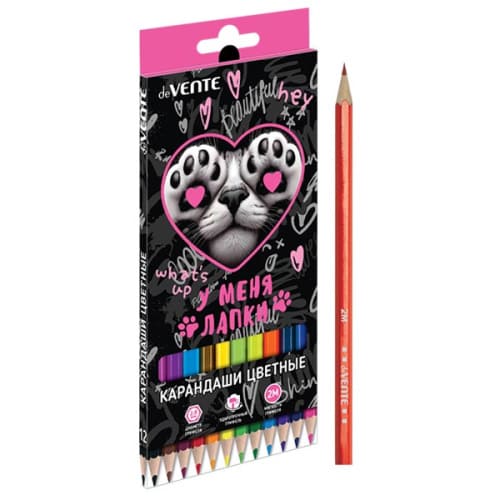 Карандаши цветные деревянные У меня лапки 12цв " deVente " 2М шестигранные, картонная упаковка, европодвес