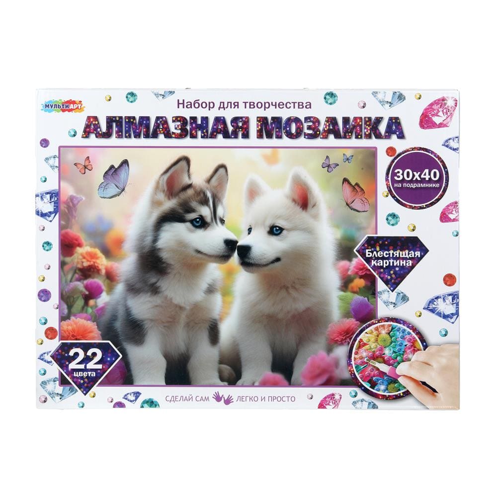 Алмазная мозаика 30*40 с подрамником поцелуй хаски МУЛЬТИ АРТ в кор.20шт