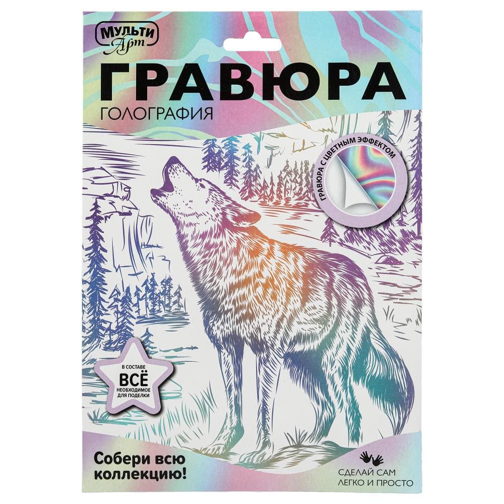 Гравюра эффект белая 18*24 см волк волк МУЛЬТИ АРТ в кор.120шт