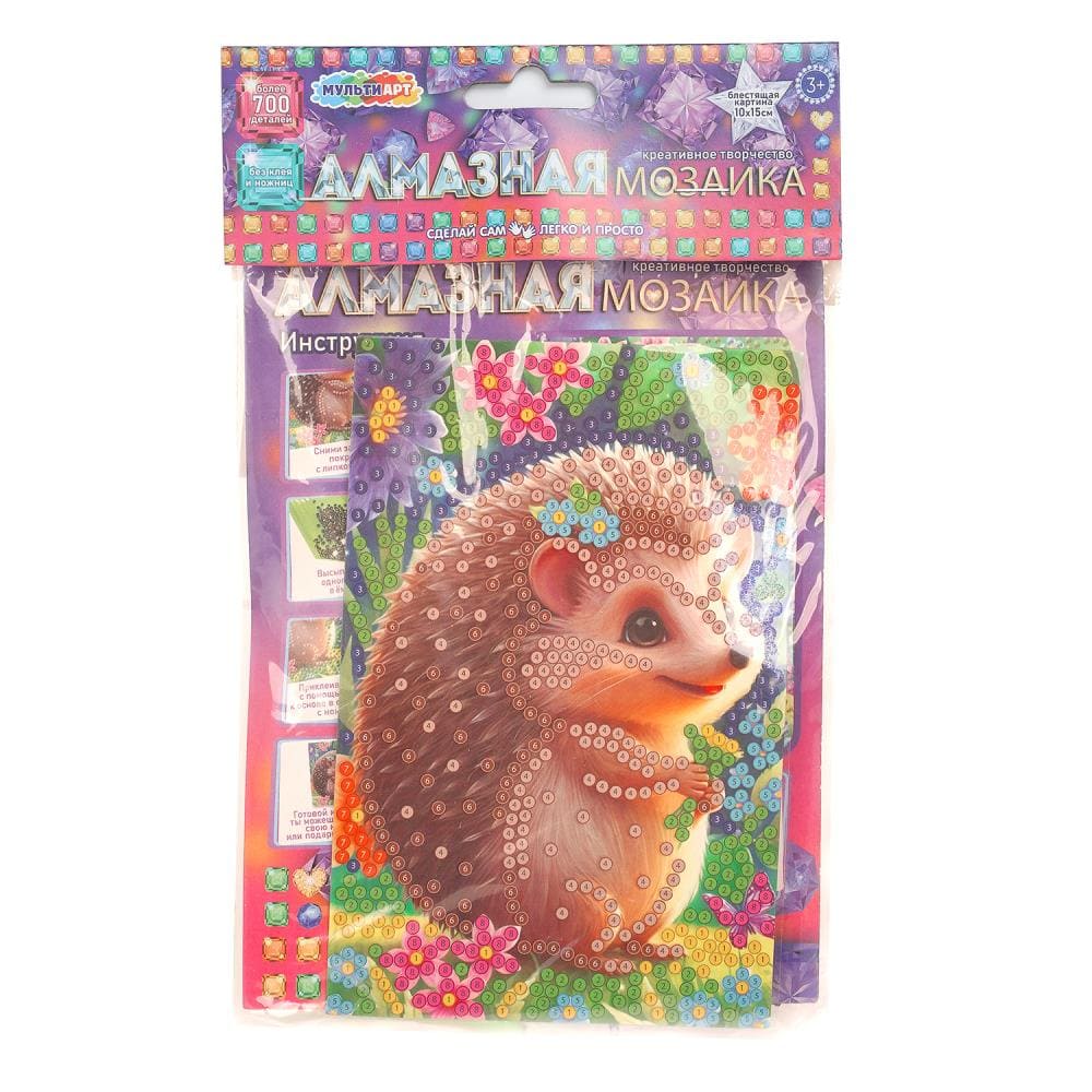 Алмазная мозаика 10*15 см Ёжик (пакет) 700 дет МУЛЬТИ АРТ в кор.100шт