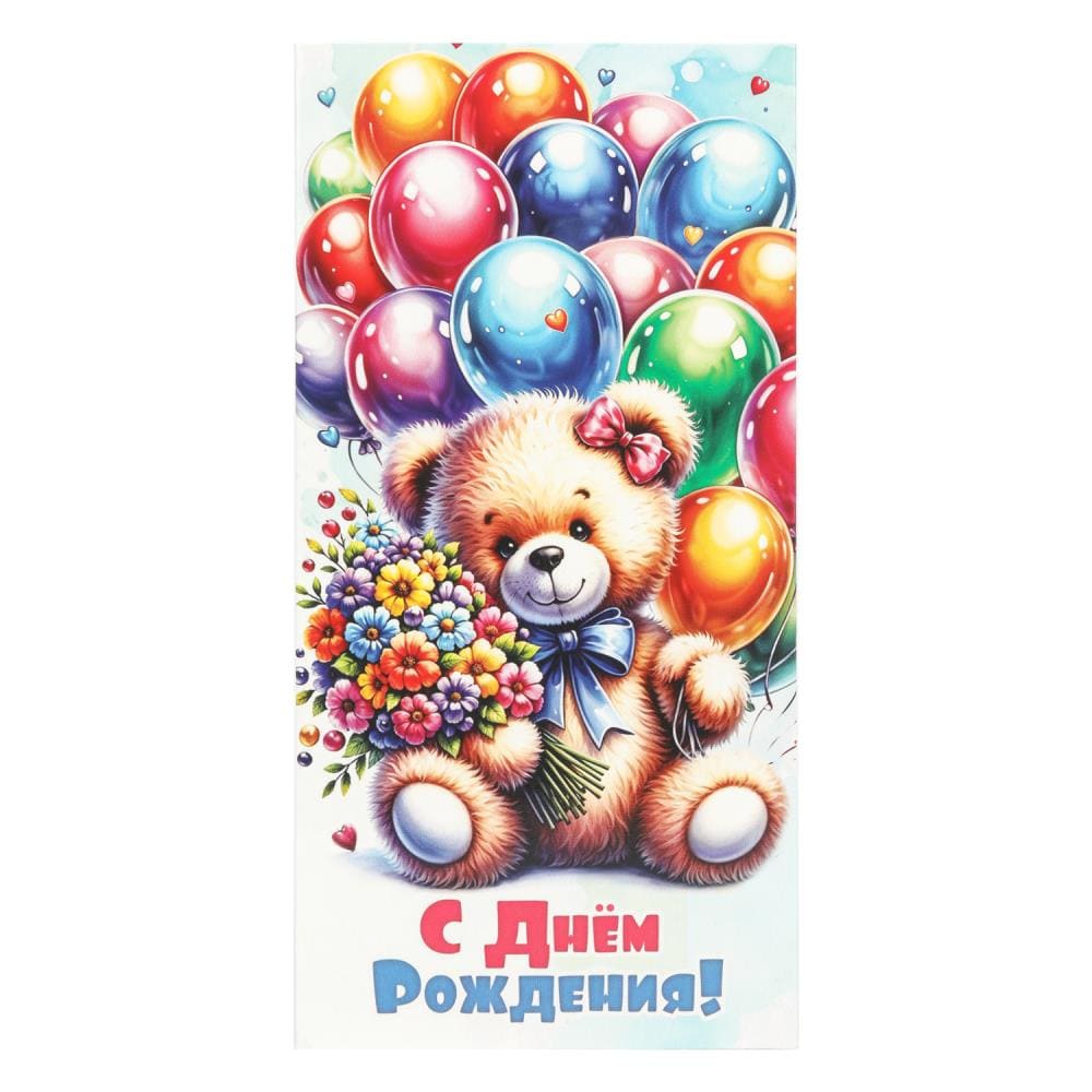Конверт для денег мишка с шариками, с днем рождения ЧУДО ПРАЗДНИК уп-10шт в кор.100уп