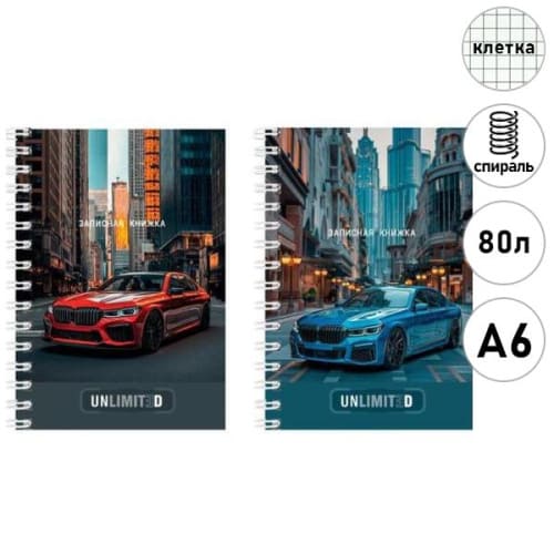 Записная книжка МАЛЫЙ ФОРМАТ А6 спираль 80л " Проф-Пресс " Шикарные автомобили-2, клетка, обложка - мелованный картон, 2 дизайна