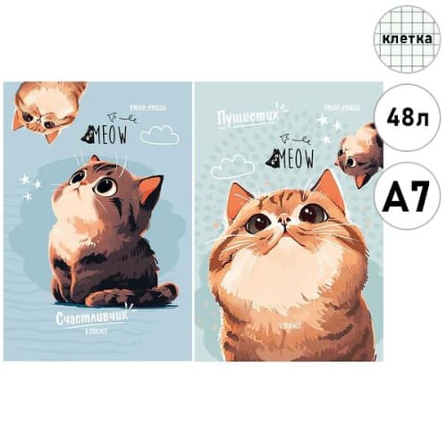 Блокнот МАЛЫЙ ФОРМАТ А7 48л " Проф-Пресс " Кот-пушистик- 1, клетка, обложка - мелованный картон, склейка, 2 дизайна