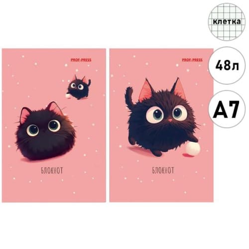 Блокнот МАЛЫЙ ФОРМАТ А7 48л " Проф-Пресс " Пушистик, клетка, обложка - мелованный картон, склейка, 2 дизайна