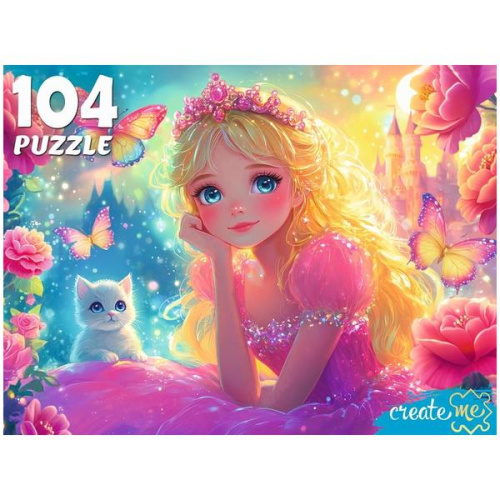 Пазлы " Рыжий кот " 104элемента Принцесса в розовом платье 33*24см, картонная упаковка 20,2*14,4*4,1см