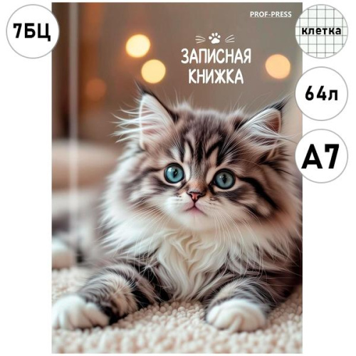 Записная книжка МАЛЫЙ ФОРМАТ А7 7БЦ 64л " Проф-Пресс " Милые котята- 6, клетка, обложка - глянцевый ламинированный картон, сшивка
