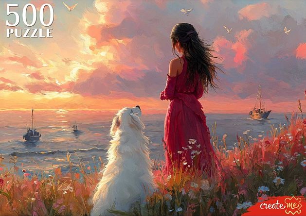 Пазлы " Рыжий кот " 500элементов На закате 47*33см, картонная упаковка 33,1*23,3*5см