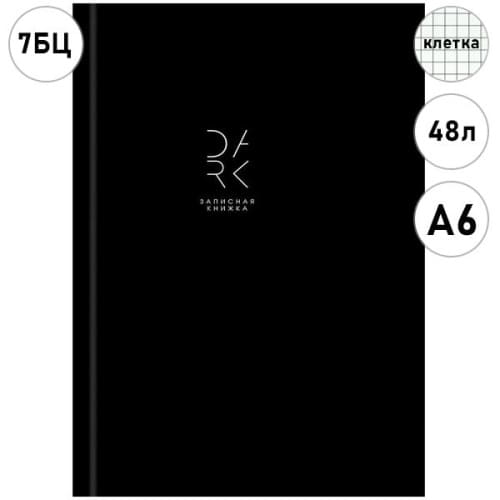 Записная книжка МАЛЫЙ ФОРМАТ А6 7БЦ 48л " Проф-Пресс " Дизайн в черном цвете- 1, клетка, обложка - глянцевый ламинированный картон, лен, сшивка