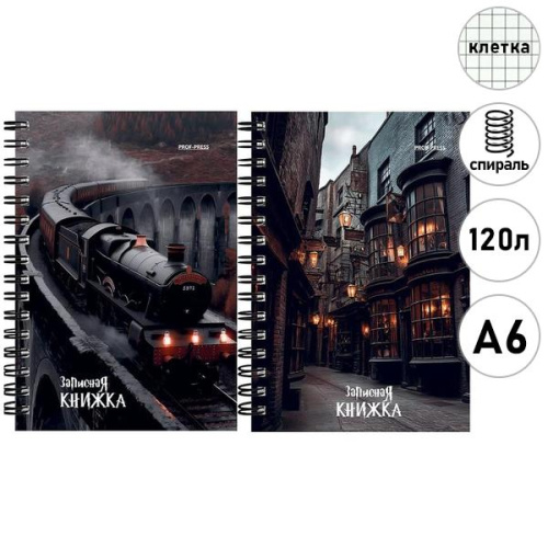 Записная книжка МАЛЫЙ ФОРМАТ А6 спираль 120л " Проф-Пресс " Школа магии, клетка, обложка - мелованный картон, 2 дизайна