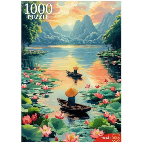 Пазлы " Рыжий кот " 1000элементов Лодки на реке с лотосами 47*67см, картонная упаковка 23,1*32,1*5,1см