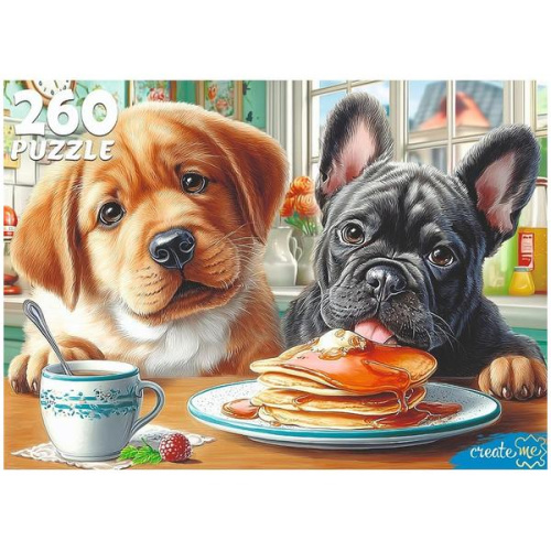 Пазлы " Рыжий кот " 260элементов Щенки сладкоежки 33*24см, картонная упаковка 25*17,5*4,3см
