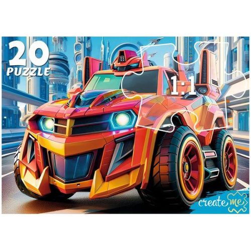 Пазлы " Рыжий кот " Макси. 20элементов Машинка будущего 30*21,5см, картонная упаковка 18,3*12,6*3,8см