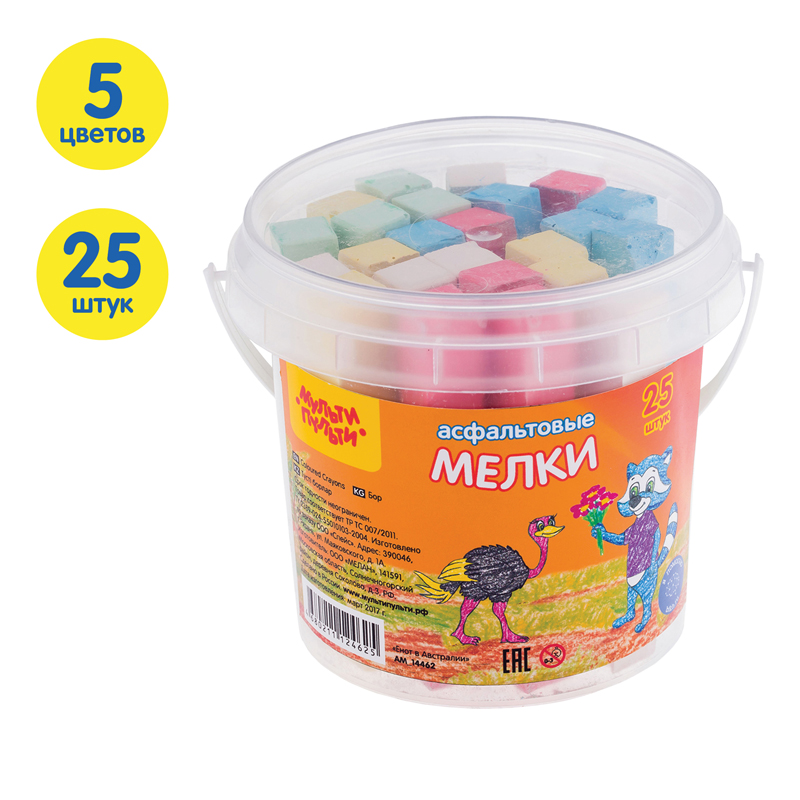Мелки цветные для асфальта Мульти-Пульти "Енот в Австралии", 25шт., 5цв., пластиковое ведро