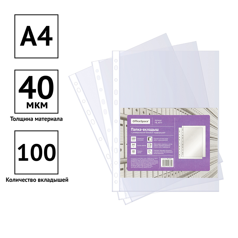 Папка-вкладыш с перфорацией (файл) OfficeSpace А4, 40мкм, глянцевая