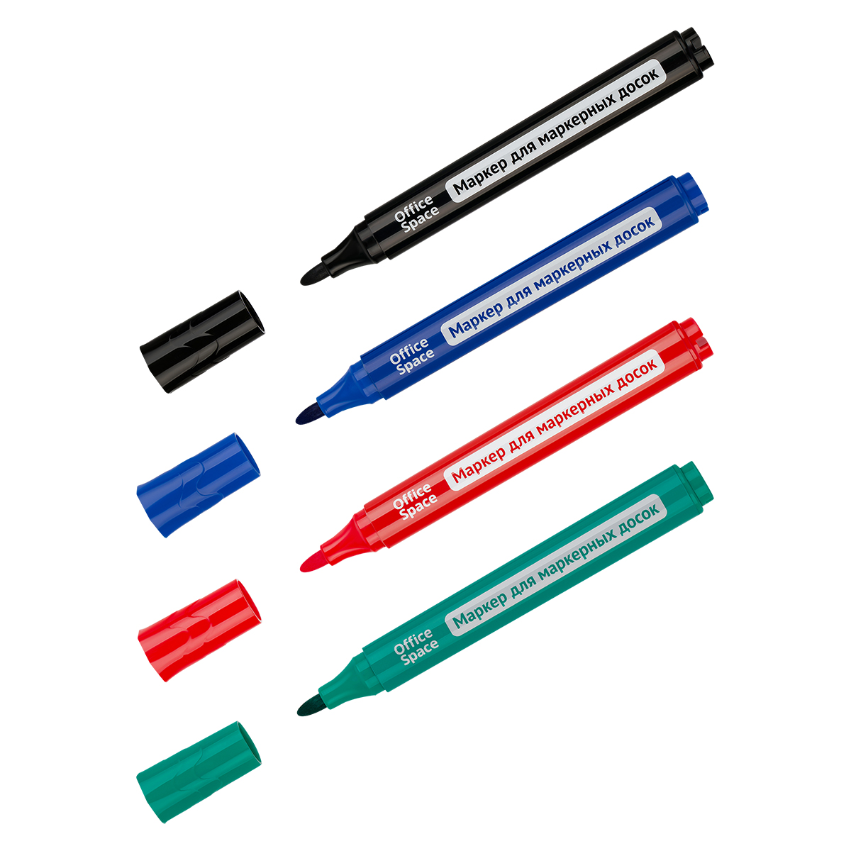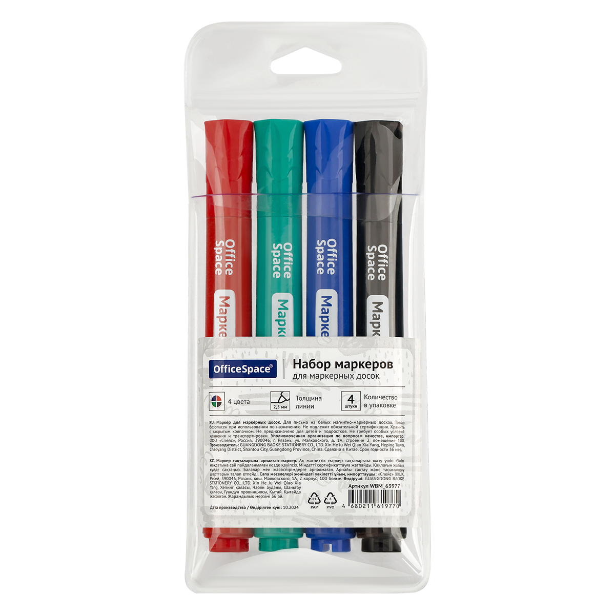 Набор маркеров для белых досок OfficeSpace "Bullet" 04цв., пулевидный, 2,5мм, чехол с европодвесом