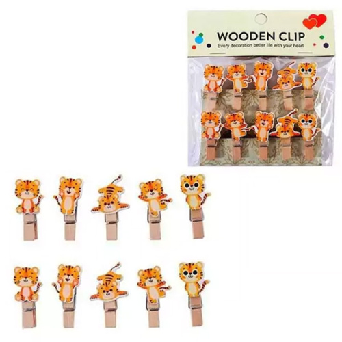 Прищепки декоративные " Mazari " Tigers деревянные 10шт 3,5*0,7мм, пакет, европодвес