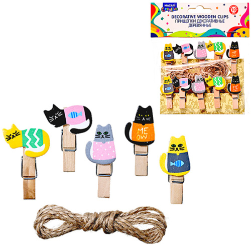 Прищепки декоративные " Mazari " Кошечки деревянные 10шт 3,5*0,7мм, пакет, европодвес