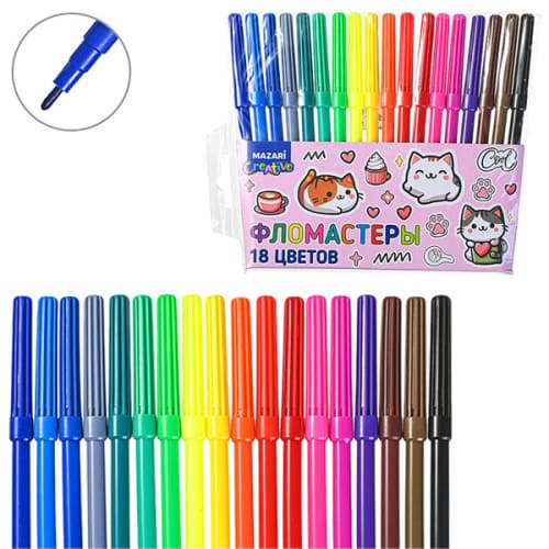 Фломастеры " Mazari " Котики 18цв круглые, вентилируемый колпачок, пластиковый блистер, европодвес