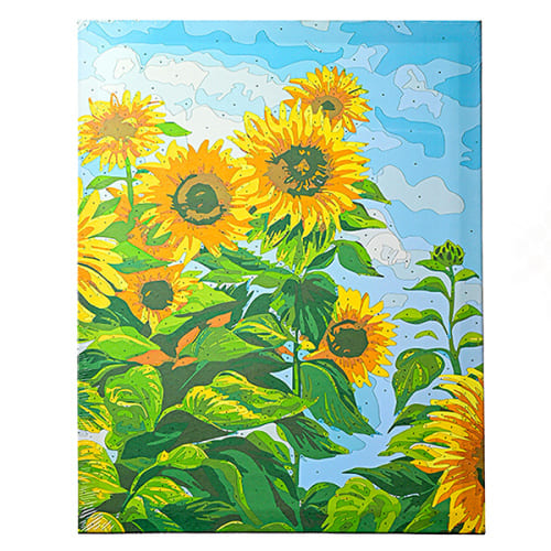 Картина по номерам " Mazari " 40*50см Подсолнухи 2, состав набора: холст на подрамнике, акриловые краски, кисти, глянцевый защитный лак, крепеж, графическая схема, термоусадочная пленка