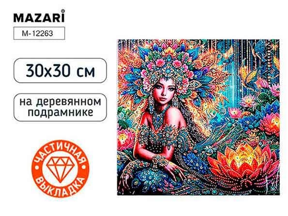 Картина алмазная " Mazari " 30*30см Сказка, состав набора: холст на подрамнике, стразы, стилус, желеобразный клей, лоток, частичная выкладка, в термоусадочной пленке