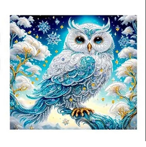 Картина алмазная " Mazari " 30*30см Сова, состав набора: холст на подрамнике, стразы, стилус, желеобразный клей, лоток, частичная выкладка, в термоусадочной пленке