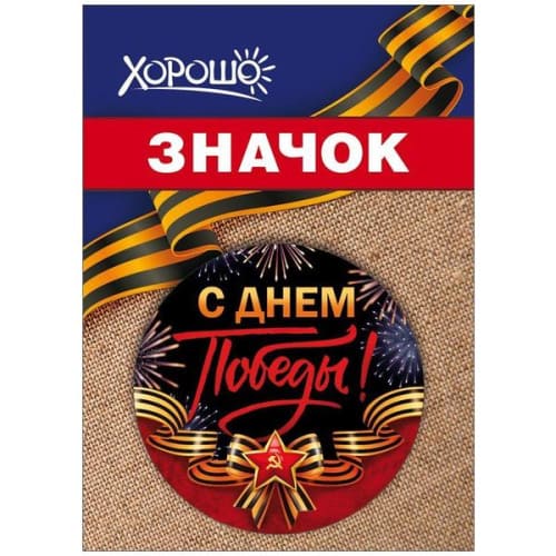 Значок " Хорошо " 304 d=56мм " 9 Мая- С Днем Победы! Красная звезда, Георгиевская лента, салют, металл