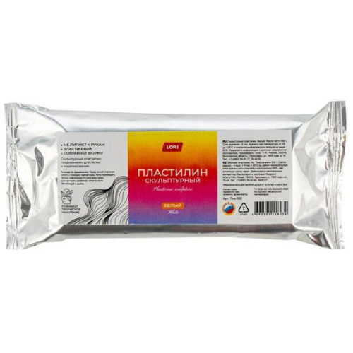 Пластилин скульптурный " Lori " Классика белый 500г, индивидуальная упаковка