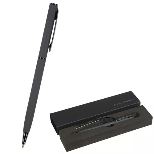 Ручка подарочная шариковая автоматическая " Bruno Visconti " Palermo синяя 0,7мм, толщина письма 0,5мм, поворотный механизм, корпус- латунь, цвет корпуса графитовый, металлический наконечник, металлический клип, подарочная упаковка