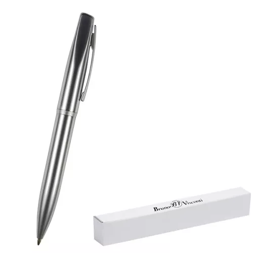 Ручка подарочная шариковая автоматическая " Bruno Visconti " Portofino синяя 1,0мм, толщина письма 0,7мм, поворотный механизм, корпус- нержавеющая сталь, цвет корпуса серебряный, металлический клип, подарочная упаковка