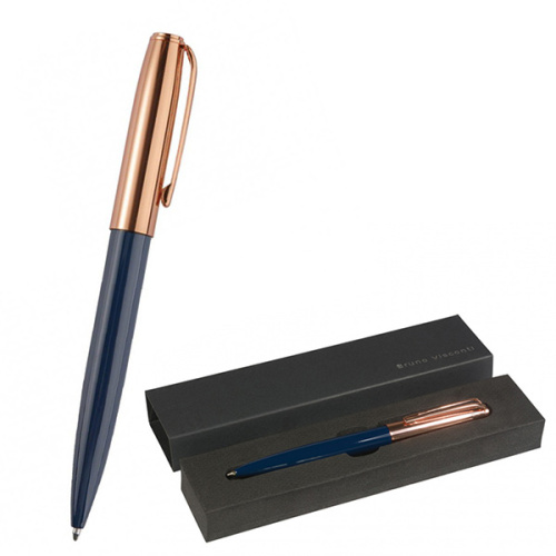Ручка подарочная шариковая автоматическая 20-0383-01/09 " Bruno Visconti " Napoli синяя 1,0мм, толщина письма 0,7мм, поворотный механизм, металлический корпус, покрытие glossy pro, цвет корпуса синий/розовое золото, металлический клип, черный картонный футляр