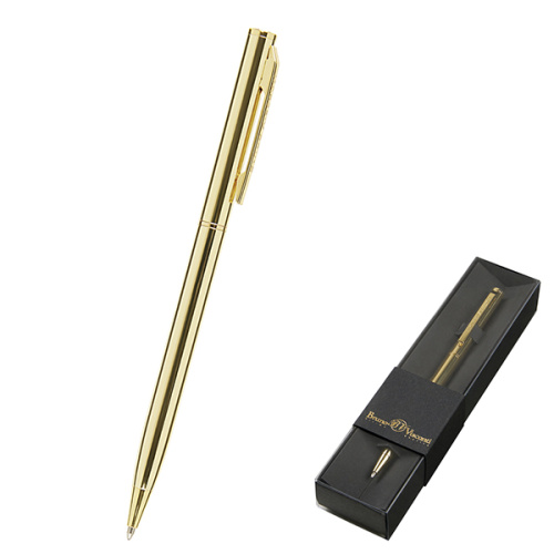 Ручка подарочная шариковая автоматическая 20-0250/264 " Bruno Visconti " Palermo синяя 0,7мм, толщина письма- 0,5мм, поворотный механизм, корпус- нержавеющая сталь, цвет корпуса золотой, металлический клип, подарочная упаковка